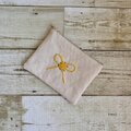上質の国産帆布に、ちくちく手刺繍ミモザでリボンを描きました。