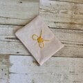 今回は、そんな大好きなミモザと大好きなリボンを手刺繍でデザインしました。