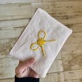 大人かわいい手刺繍ミモザリボンポーチ(ポケットティッシュサイズ) 国産帆布 コットンリネン 小物入れ ギフト