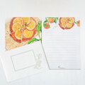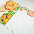 水彩画で描いたオレンジタルトをアート作品のような美しいデザインの便箋に仕上げました。上質紙に両面カラーで印刷した便箋です。