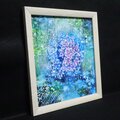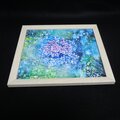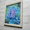 「紫陽花の万華鏡」は、鮮やかな青色と薄い紫色の紫陽花が華麗に描かれた美しい油絵作品です。背景には緑色と水玉模様が施され、見る人の心を引きつける華やかさを演出します。このアートは、紫陽花の豊かな色合いが、あなたの空間に心温まる雰囲気をもたらしてくれることでしょう。