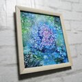 この油絵のサイズは横242mm × 縦272mmで、壁掛け用の金具が付属していますので、リビングや寝室に手軽に飾ることができ、「紫陽花の万華鏡」は日常の中で美しいアートとしてしっかりと存在感を発揮します。