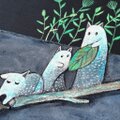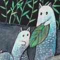 絵本と原画セット 絵本「猫木霊と黒猫木霊」 徳島洋子作品 原画タイトル「道をわたる猫木霊」