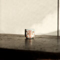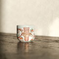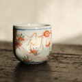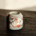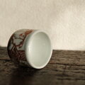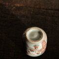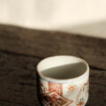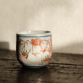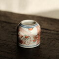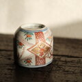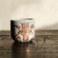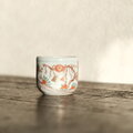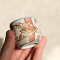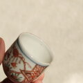 鳥と草花が可愛い◇伊万里 花文赤絵金彩覗き猪口 骨董/antiques 酒器 古民家 明治時代