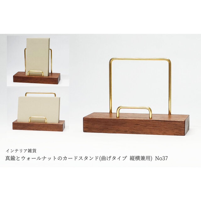 真鍮とウォールナットのカードスタンド(曲げタイプ 縦横兼用) No37