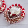 小さな作品を作るとき、まずメインのパーツを選びます。 そのパーツがいちばん美しく見えるように、隙間なく刺繍を重ねていくと── 色とりどりのビーズたちが、まるでおしゃべりしているような、にぎやかな仕上がりになります。