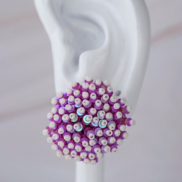 おゃべりなピアス・イヤリング64|ビーズ刺繍×ピンク×大ぶり×選べる金具×一点物×サージカルステンレス
