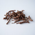 山野に自生するアカネ科のつる性の多年草です。「赤い根」から「あかね」に転じたそう。太いひげ状の根を煮出し、古くから染料や薬としても用いられてきました。茜には日本茜、インド茜、西洋茜といくつか種類があり、染料としては、西洋茜に比べて赤みが強いのが特徴です。