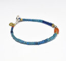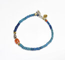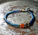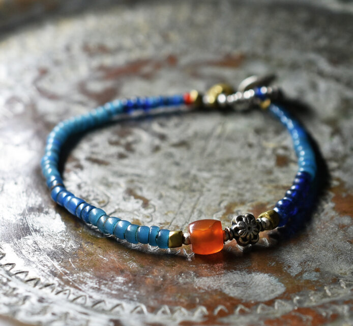 ミゾーラムカーネリアンと花模様インドシルバー、ナガ族アンティークビーズ、ブルービーズなどを繋いだブレスです。
