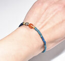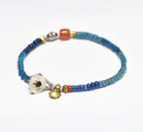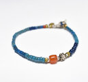 ミゾーラムカーネリアンと花模様インドシルバー、ナガ族アンティークビーズ、ブルービーズのブレス