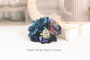 結婚式・卒業式・入学式に♡ネイビーのダリアと紫の薔薇のコサージュ 2Way コンパクトサイズ バラ ダリア 入学式 卒業式 紺