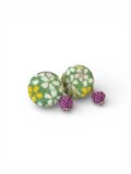 一越ちりめん・小花の可愛いくるみボタンに水引き玉結びのイヤリング♪