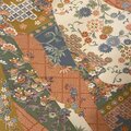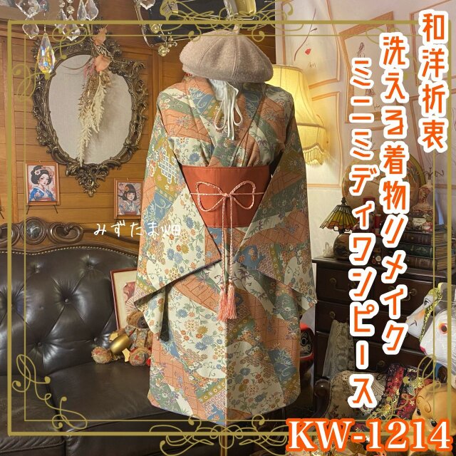 着物リメイク ワンピース ドレス ミニミディ 洗える 化繊 名古屋帯 和洋折衷 洗練のくすみカラー・古典幾何学 KW-1214