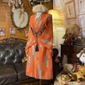 【 着物リメイク ワンピース ドレス 洗える 化繊 名古屋帯サッシュベルト 和洋折衷 レトロ 古着 ハンドメイド 夕映えのオレンジ・流水小花文様 KW-1216】