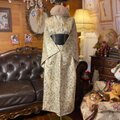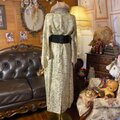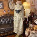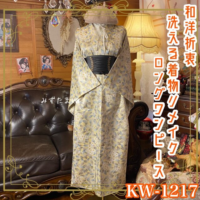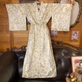 【 【訳あり】着物リメイク ワンピース ドレス ロング 洗える 化繊 和洋折衷 レトロ 古着 ハンドメイド 砂色のベージュとボタニカル KW-1217】