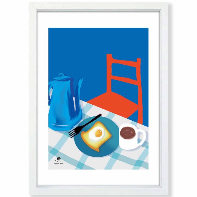 クラシカルなテーブルでおいしい朝食 朝の風景をおしゃれに描きましたポスター。