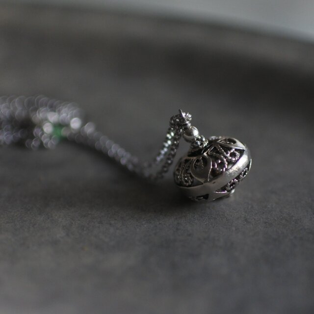 チェーンと留め具は、silver925にロジウムコーティング(硫化による変色が出にくい)されているものを使用しました。