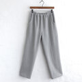 ウエストはゴム仕様でやさしくフィットし、太ももから裾まで程よいゆとりがあり、全体にすっきりとした印象です。