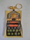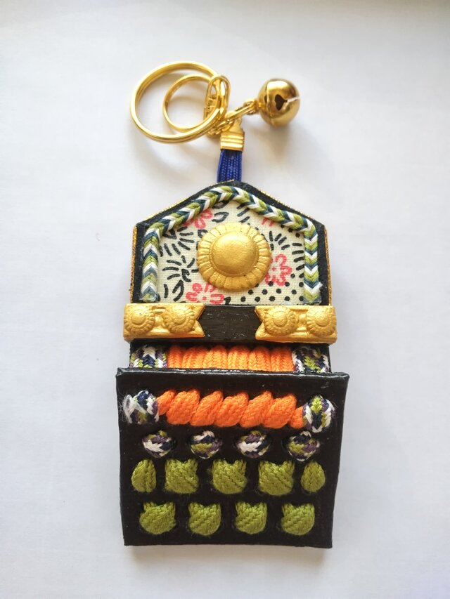 八犬伝をテーマにしたストラップで、敵の攻撃から身を守る武具を模したデザイン。