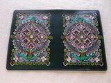 そのため、一枚一枚デザインを変えて刻印を配列し、染料も一枚づつ調合して染色することにこだわっています。