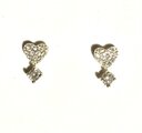 小さなキュービックジルコニアがちりばめられたハートに、ダイヤ型のジルコニアがあしらわれた 小さくてお洒落なピアスです。