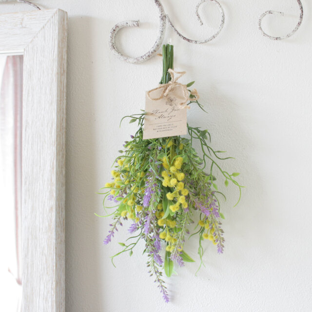 ミモザとラベンダーのミニスワッグ