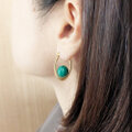 濃淡のあるディープグリーンの色調が美しい、大粒マラカイトのピアスです。