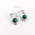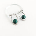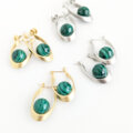 濃淡のあるディープグリーンの色調が美しい、大粒マラカイトのイヤリングです。