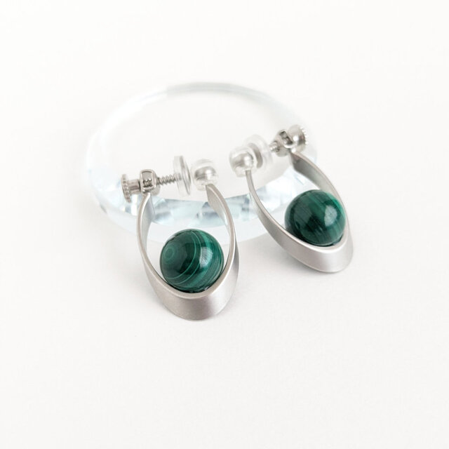 イヤリング[Beautiful stripes/Silver] Malachite マラカイト 天然石 孔雀石