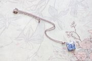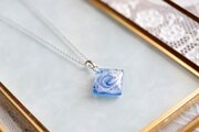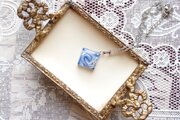 白とシルバーのマーブル模様の隙間から覗く落ち着いた深いブルーが印象的なペンダント。