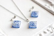 レジンアート スクエアペンダント〈瑠璃の花〉