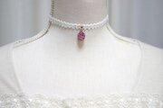 白のレースとリボンが上品で清楚な印象を与えるチョーカー。