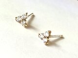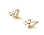 3つのキュービックジルコニアにゴールド、4.5mmの小さなクローバーのピアスです。