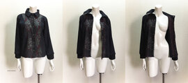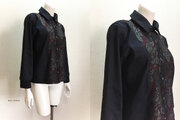素敵なブラウスが届きました。首元の黒いトリミングがとても効いていると思います。デザイン画のように黒いロングスカートと合わせて、足元はパンプスで気合を入れて。動きやすいのもいいですね。ありがとうございました。