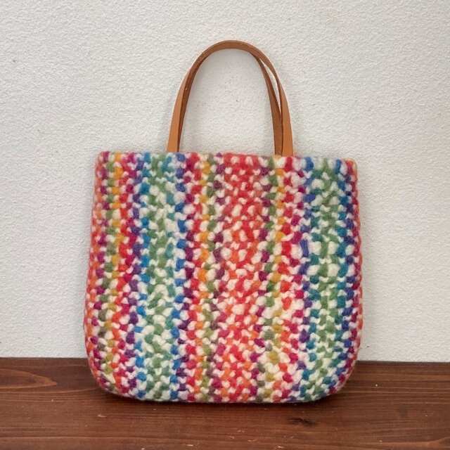 羊の原毛を、縮絨させてつくるハンドメイドのフェルトバッグ。