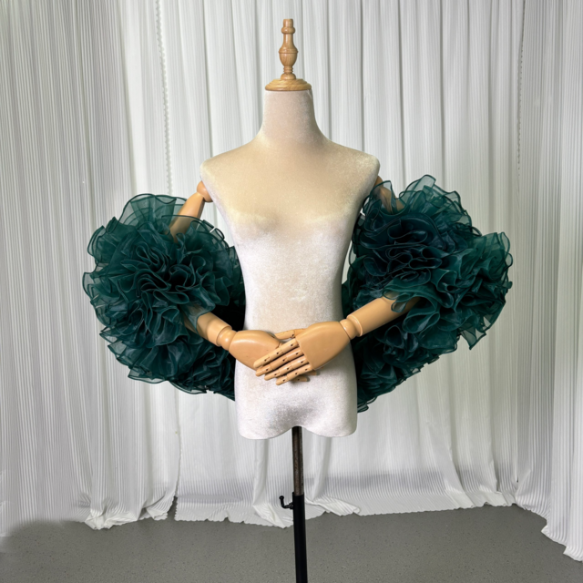 深めな緑 ドロップショルダー ラッフルフリル 上質オーガンジー ポンチョ バラトレーン 前撮り