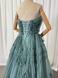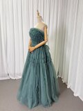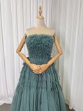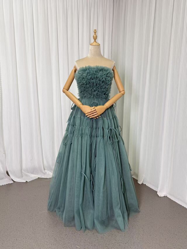 パーティードレス ミントグリーン ベアトップ ラッフルフリル デザイン感 リボン 編み上げ 前撮り