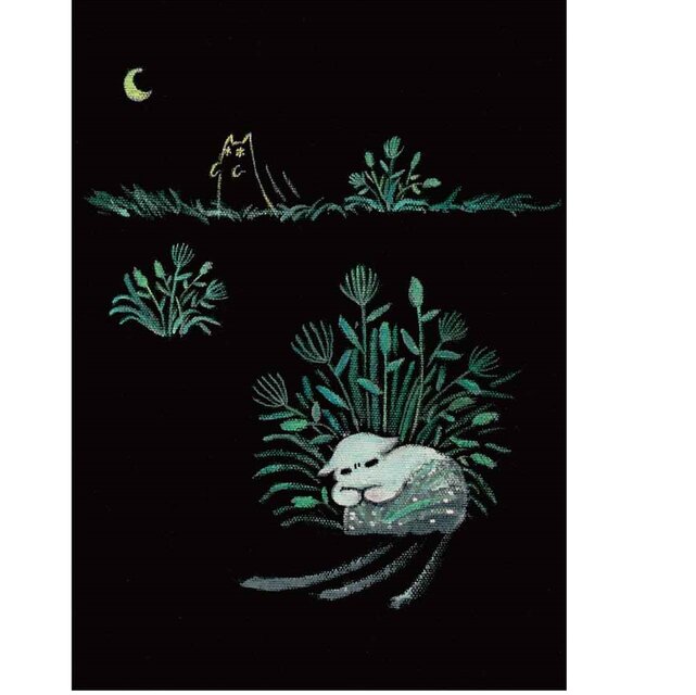 絵本と原画セット 絵本「猫木霊と黒猫木霊」 徳島洋子作品 原画タイトル「隠れる猫木霊」