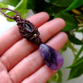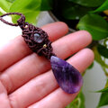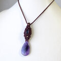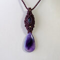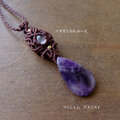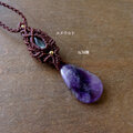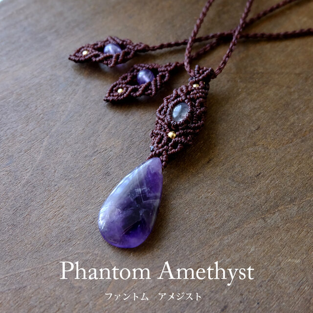 長い年月をかけ自然が生み出したクリスタルには、透明感もありファントム状の紫のグラデーションが神秘的なファントムアメジストを繊細に編みこんで華やかに彩る女性らしいマクラメ編みペンダントに仕上げました。