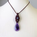 ファントムアメジスト (インド産)・マガダスカルローズ・エメラルド リバーシブル マクラメ編みペンダントネックレス 3151