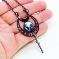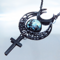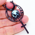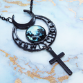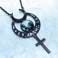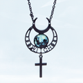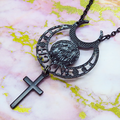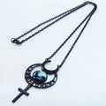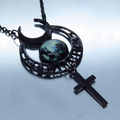 ゴシック調ブラックムーンネックレス ロザリオ 十字架 魔女 ウィッチ 三日月 トリプルムーン パンク ロック メンズ レディース