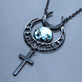 三日月モチーフの下にロザリオ(十字架)を吊り下げて完成度を高めています