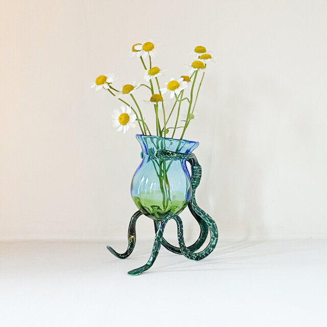 3点ガラス・スタンド花器フラワーベース今回の作品も独創的なステキなフォルムで、とても気に入りました 前回のフクロウともども大切に飾らせていただきます!