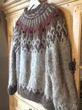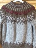 アイスランドロピセーター ユニセックス 男性にも長〜い旅を経て無事に届きました。 柔らかいグレーのグラデーションが とても綺麗な柄を作り出しています。 ケイトさんのセーターは本当に暖かくて、 今年は暖冬なのでセーターの上に 何も羽織らずに外出しても 大丈夫な日もあるほどです。 ハンドメイドの温もり、本当にいいですね。 この度もありがとうございました。
