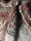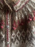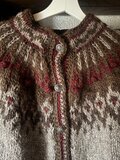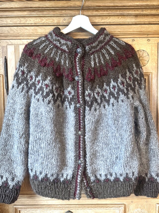 本場アイスランド産ISTEX社の毛糸を使って編んだ、編み込みロピカーディガンです。