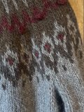 手紡ぎ毛糸のセーター久々にケイトさんのセーターをいただきました。 手紡ぎの毛糸で手編み、この温もりはたまりません。 大好きです。 こげ茶色に鮮やかなイエローとブルーの配色も私好み。 この度もありがとうございました。