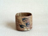 この湯のみは、粗目の信楽の土を用い成形時の土が柔らかいうちに四方に形作り、絵付けをして焼成を重ねて仕上げています。描く時に使用した鉄釉は、原材料を近くの田んぼから採取して自陶房で調合したものです。梅とつばめを一面ずつに描いています。素朴で温かみのある絵柄が映える味わい深い作品です。刺し身や酢の物などを入れる向付としてもお使いいただけます。