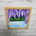 使用されている素材は、ホルベインの高品質な油絵の具と色紙で、その深い青色と紫色がネモフィラ畑と藤の花の美しさを一層引き立てています。この作品は、あなたの日常に特別な美しさをもたらし、いつまでもお楽しみいただける商品としてお勧めです。