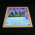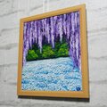 「ネモフィラと藤の花」は、青いネモフィラと紫色の藤の花、そして美しい森を描いた魅力あふれる油絵作品です。この作品は、左右に広がる藤の花と、中央に位置する緑豊かな森、そして下に広がる田んぼのネモフィラ畑が織りなす美しい風景を見事に表現しており、観る人に心の解放と感動を提供します。自然の息吹が感じられる一瞬が、あなたの生活空間に豊かな彩りを加えてくれることでしょう。