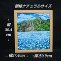 この油絵のサイズは横242mm × 縦272mmで、ナチュラルフレームサイズは横27.4cm × 縦30.4cm × 厚さ0.9cmです。壁掛け用の金具が付属しているため、お好きな場所に手軽に飾ることができ、「青の洞窟のネモフィラ」はリビングや書斎、寝室などでアートとしての存在感を発揮します。